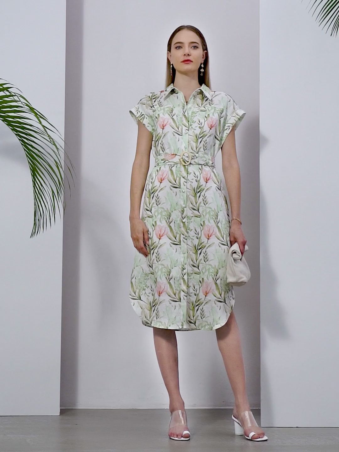The captivating Desiree floral long dress combines a collared-neckline with cap sleeve and a chic waist-cinching belt, ensuring a striking and sophisticated look. Crafted with natural fabric and refreshing floral print, it drapes gracefully and exudes modern elegance. Perfect for special occasions or a night out, this dress showcases a fusion of contemporary fashion and timeless charm, making it a standout addition to your wardrobe.