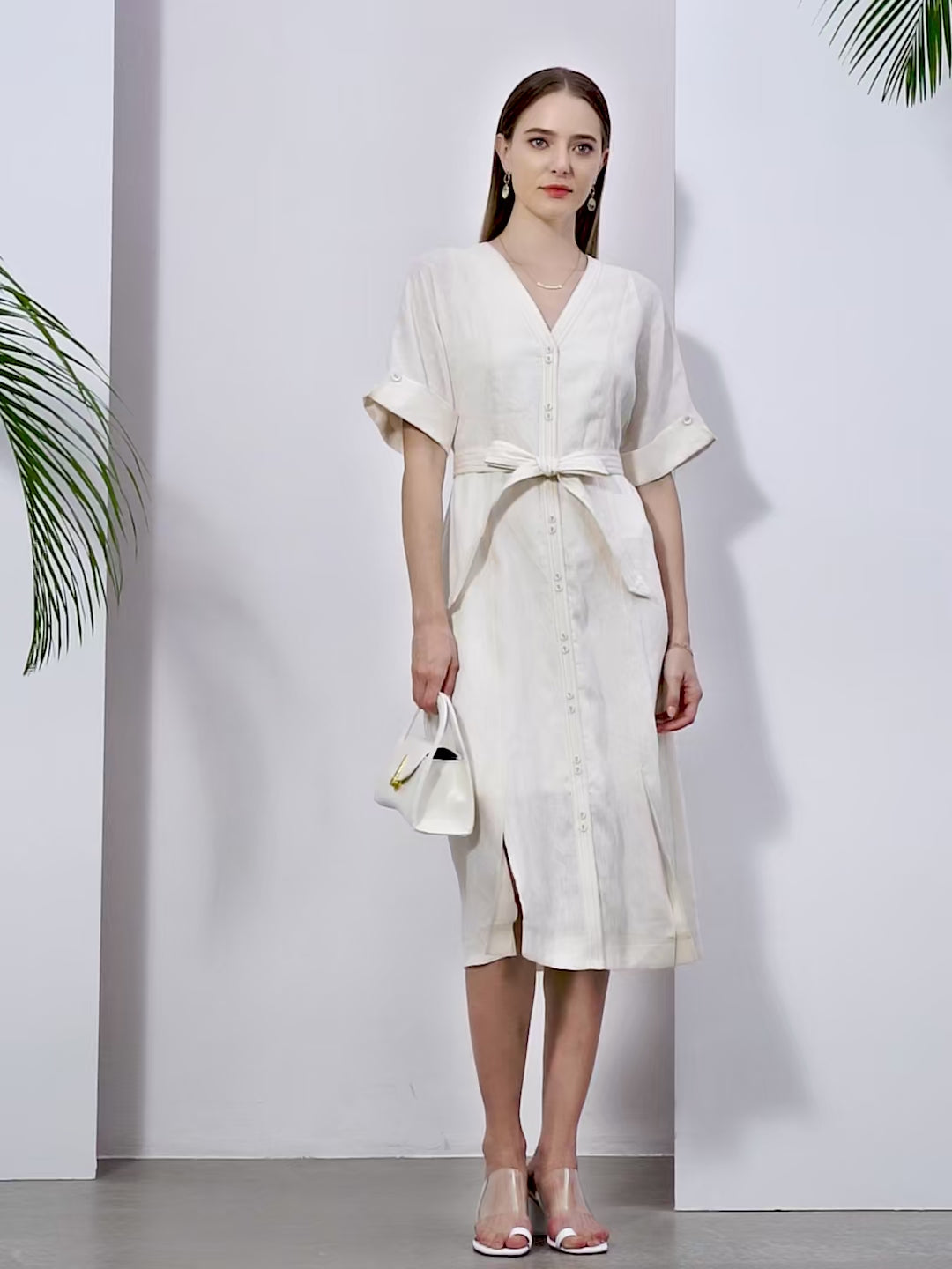 GDS Marceline Linen Dress Lily White is an exquisite, modern take on a classic midi dress.