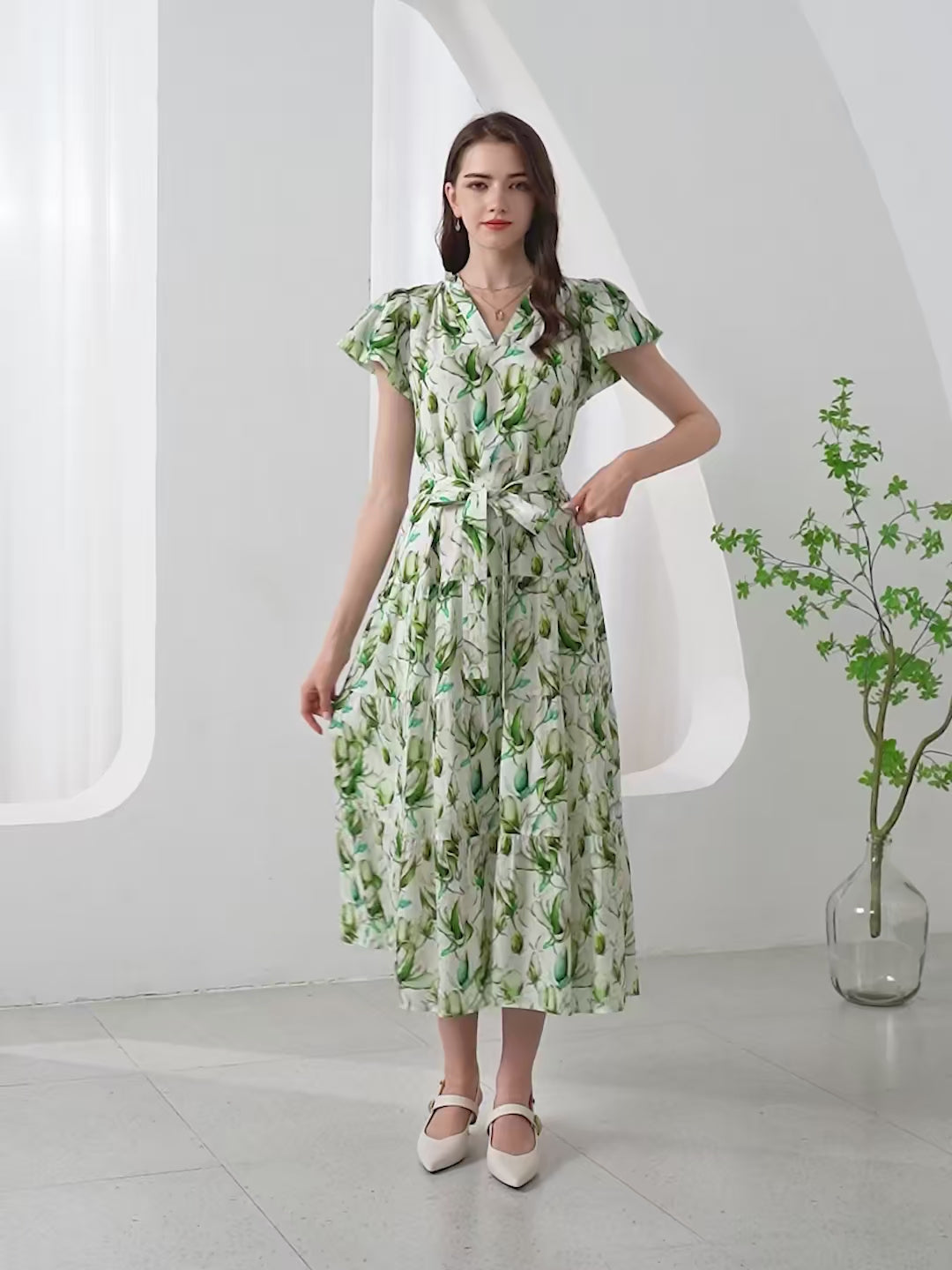 GDS Risette Tencel Long Dress | Green Print